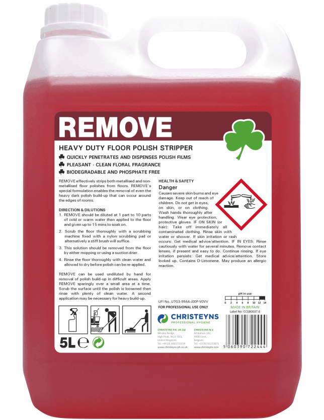 A LOW ODUR CLEAR LIQUID FLOOR STRIPPER, FREE FROM HARSH SOLVENTS AND AMMONIA THAT PRODUCES A CLEAN, RECEPTIVE BASE FOR A NEW APPLICATION OF POLISH.
