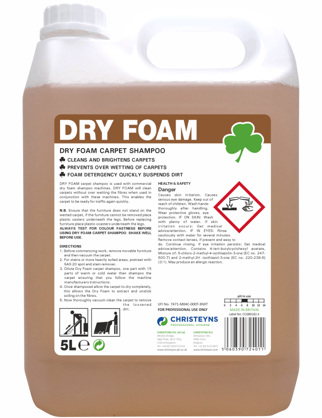 AN EFFECTIVE CARPET SHAMPOO, DESIGNED TO CLEAN CARPETS WITHOUT OVER WETTING THE MATERIAL FIBRES.