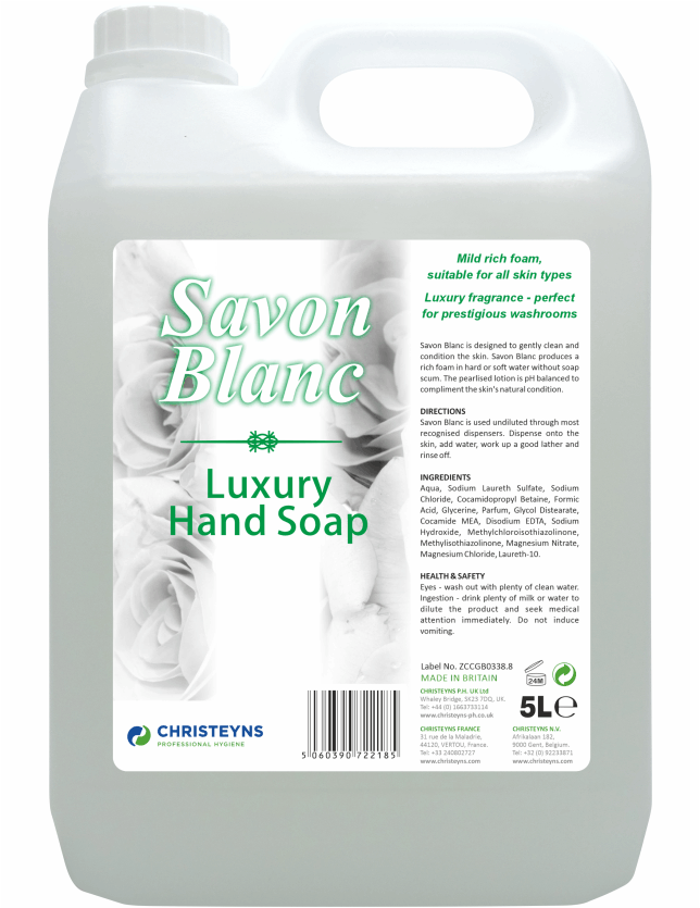 A LUXURY, PEARLISED, WHITE LIQUID SOAP, SAVON BLANC IS A COSMETIC-GRADE SOAP DESIGNED TO CLEANSE AND CONDITION THE SKIN