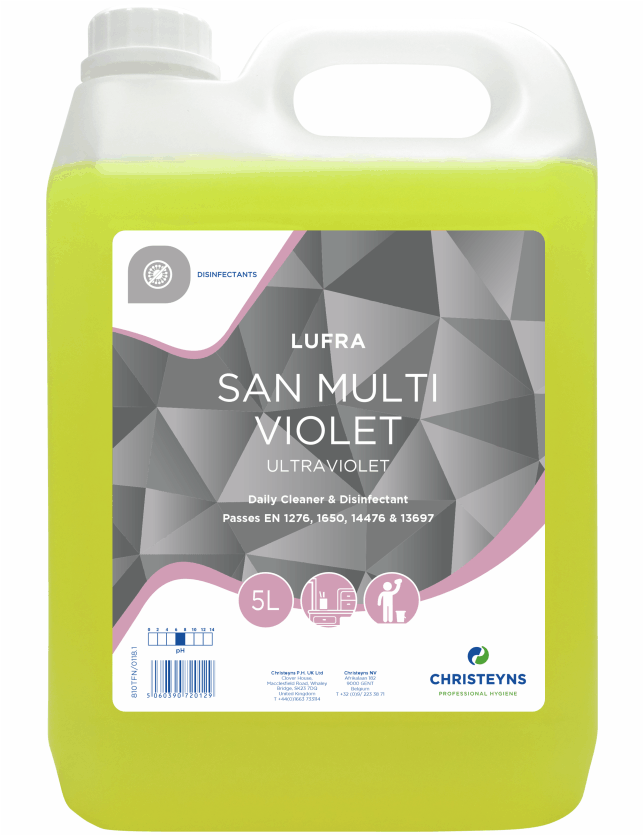 A NEUTRAL CONCENTRATED CLEANER and DISINFECTANT WITH A FRESH VIOLET FRAGRANCE, FORMULATED TO BE LOW FOAMING FOR EASE OF RINISING